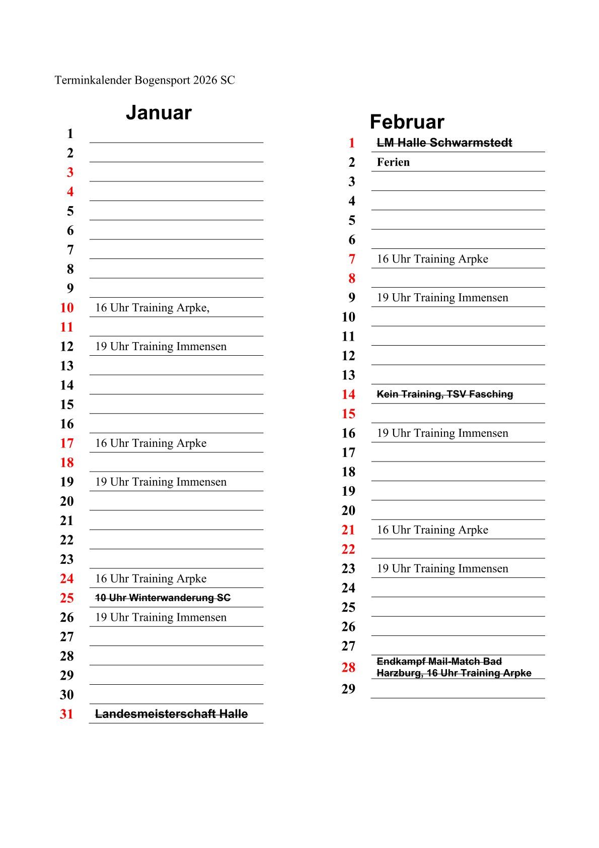 Kalender 2026